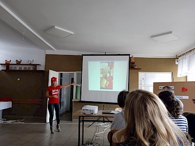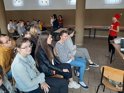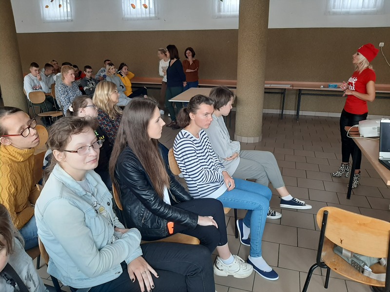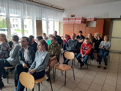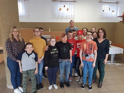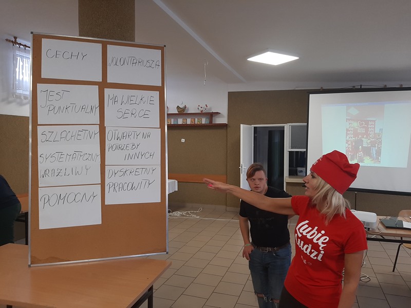W ramach międzyklasowego projektu edukacyjnego „Nabywam kompetencje społeczne i zawodowe niezbędne w dorosłym życiu”, 03.10.2022r. w naszej placówce odbyło się spotkanie uczniów klas przysposabiających do pracy z Panią Marią Ordak – wiceliderem ”Szlachetnej Paczki” działającej w środowisku lokalnym. Celem spotkania było przybliżenie idei wolontariatu, przekazanie cennych informacji dotyczących szeroko pojętej pracy wolontariackiej. Pani Maria w bardzo interesujący sposób przeprowadziła spotkanie, przedstawiając pracę wolontariuszy, jako świadomą, dobrowolną działalność podejmowaną na rzecz innych, wykraczającą poza więzi rodzinno – przyjacielsko – koleżeńskie. Jej wypowiedzi poparte były zdjęciami ukazującymi pracę wolontariacką, na których znajdowali się także nasi uczniowie, zaangażowani, jako wolontariusze w działalność „Szlachetnej paczki”. Wolontariuszem jest także syn Pani Marii – Igor. Uczniowie pod kierunkiem naszego gościa wspólnie wypracowali i zapisali cechy dobrego wolontariusza oraz ustalili, że wolontariat jest dla każdego, kto tylko ma dobre i otwarte serce na pomoc drugiemu człowiekowi. Spotkanie zakończyło się wspólnym, pamiątkowym zdjęciem.